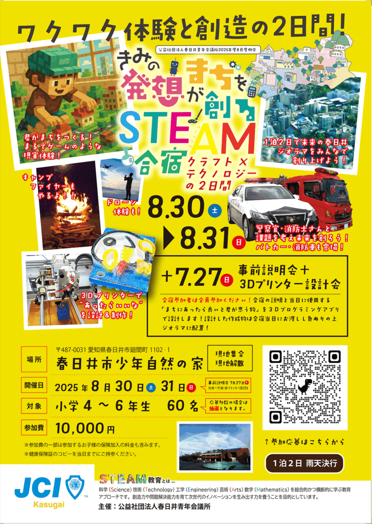 8月度例会 募集要項 【事業の内容】 8月度例会 事業報告 「きみの発想がまちを創る!STEAM合宿 〜クラフト×テクノロジーの2日間〜」 2025年8月に開催いたしました8月度例会「きみの発想がまちを創る!STEAM合宿〜クラフト×テクノロジーの2日間〜」には、猛... -