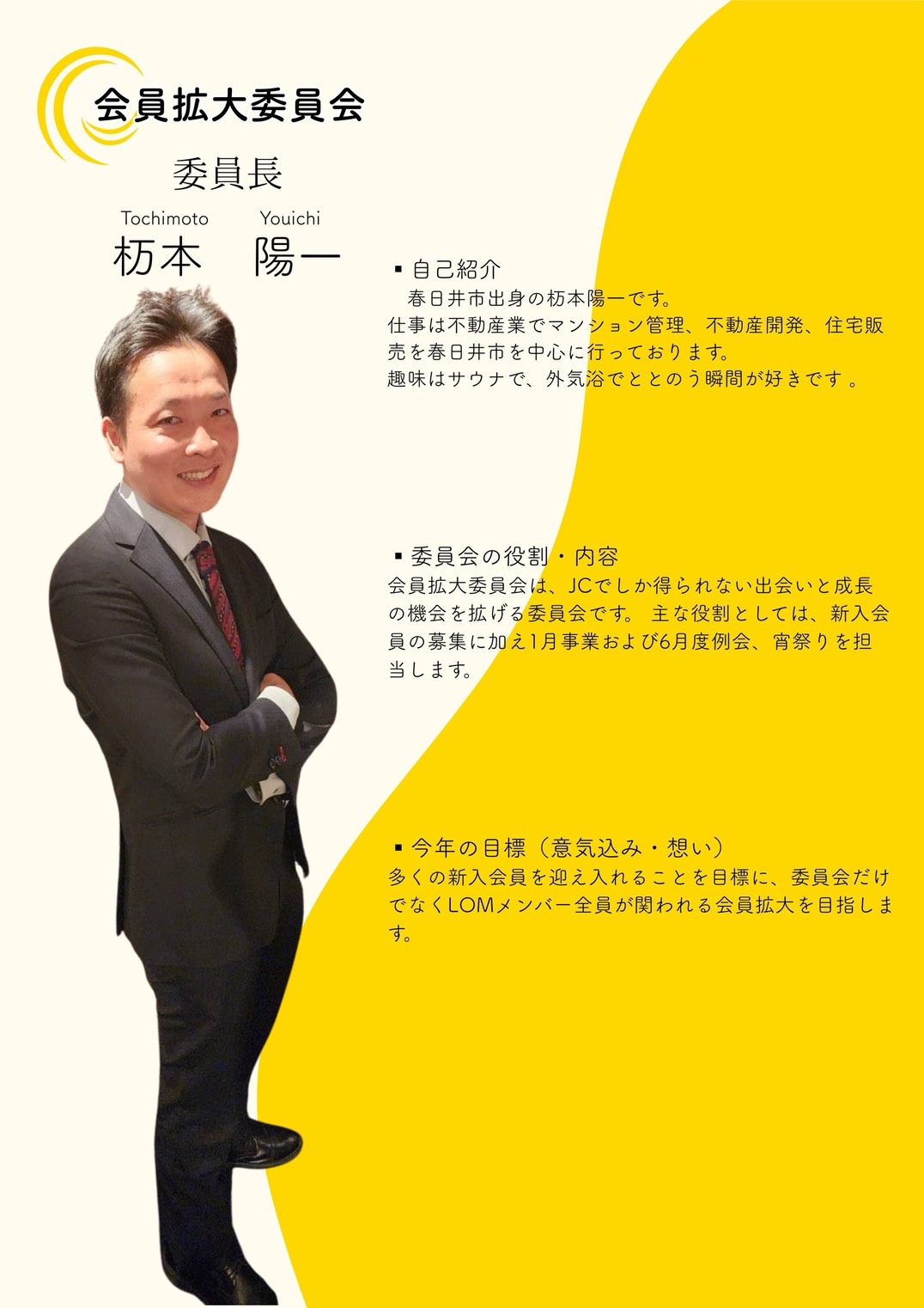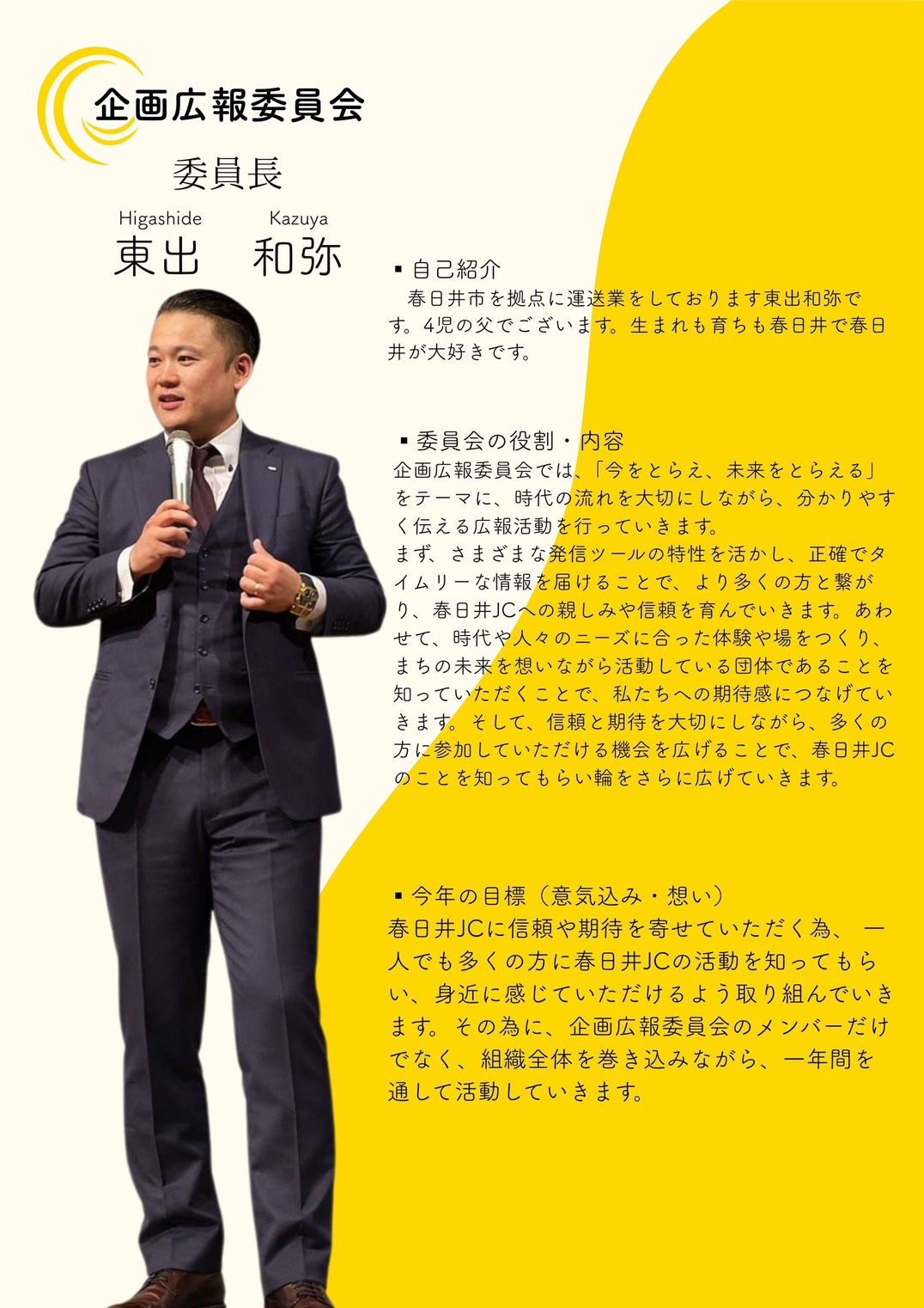 春日井JCメンバーが有意義な時間を過ごし、得るものがあったと言ってもらえるようなきっかけづくりをしていきたいです。何より、委員会メンバー全員でとにかく楽しかったと言える1年にしていきます。