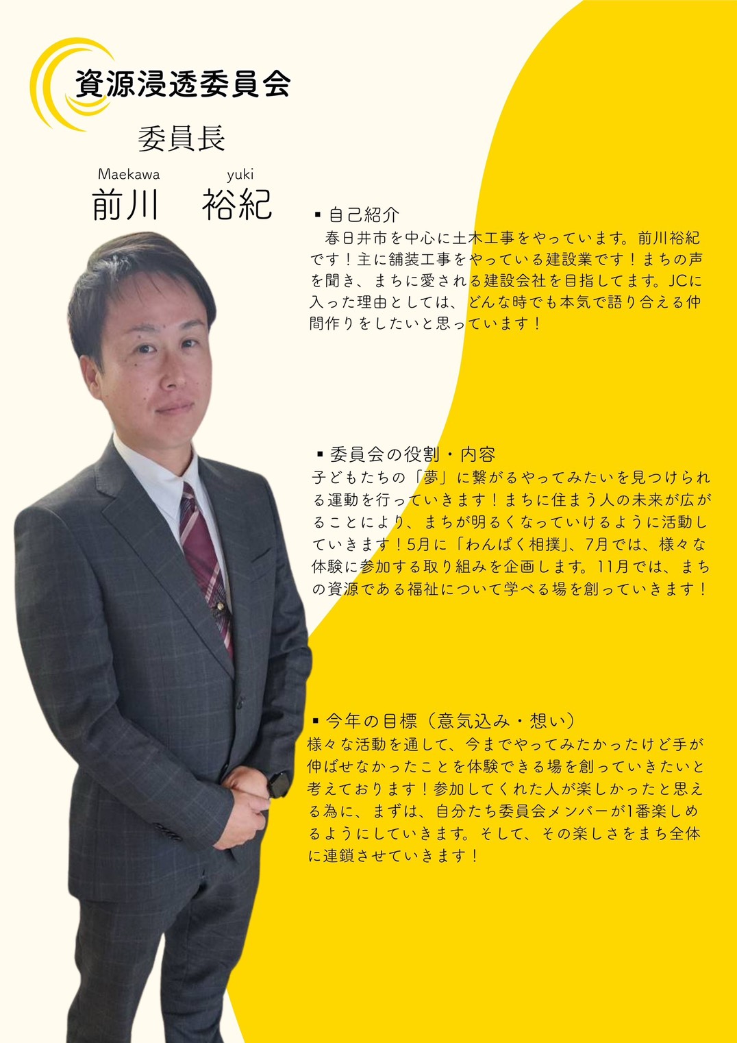 委員長としての責任感をしっかりと持ち、活動していく中で自分自身が成長できるように前向きに取り組んでいきたいです。また一緒に活動する委員会メンバーがJC活動を楽しいと感じてもらえるような雰囲気づくりを心掛けていきたいです。