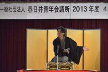 四月例会「学ぼう!コミュニケ-ション~学んで上げる↑コミュニケーション↑ わかる使える↓おもしろ落語↓~」が開催されました。コミュニケーショントレーナー田中陽子氏による講義「心のマネジメント術」では良好な人間関係を築く心の持ち方・会話の手法などを学び、落語家雷門獅篭氏の「春日井宵落語」の高座では大いに笑いながら魅力的・臨場感のある表現方法を学びました。一般参加者も100人以上参加し楽しみながら「心で以て心に伝える」コミュニケーションを学びました。