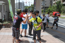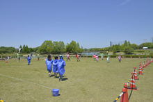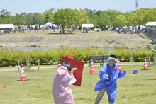 わいわいカーニバル内で「みんなで水風船ウォーズ」を行いました。攻撃の人、守る人に分かれて相手チームの陣地のフラッグを水風船で攻撃して陥落させるか、敵チームを全滅させるかのゲームです。それぞれの役割を大事にして目標のために力を合わせる、助けあう事を学ぶ競技です。晴天で気温も上がっていたので、水風船でびしょびしょになりながらも参加者たちは大喜びで楽しんでいました。