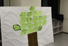 春日井市役所では春日井JC主催事業「共に生きる木をみんなで育てよう」市民の皆様が町のために何ができるかを考えて書いた木のモニュメントが展示されました。